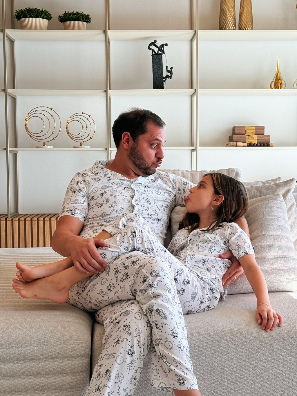 Nosso kit adulto e infantil com estampa de constelação são mais do que uma roupa de dormir, é uma viagem para um universo de memórias e criatividade.